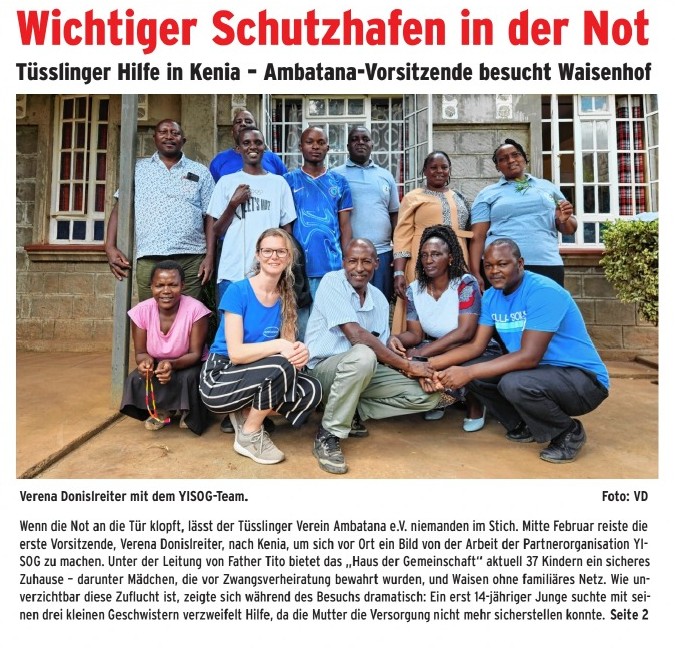 Direkter Austausch in Kenia: Unsere erste Vorsitzende Verena Donislreiter war Mitte Februar für einige Tage bei unseren lokalen Partnern YISOG.